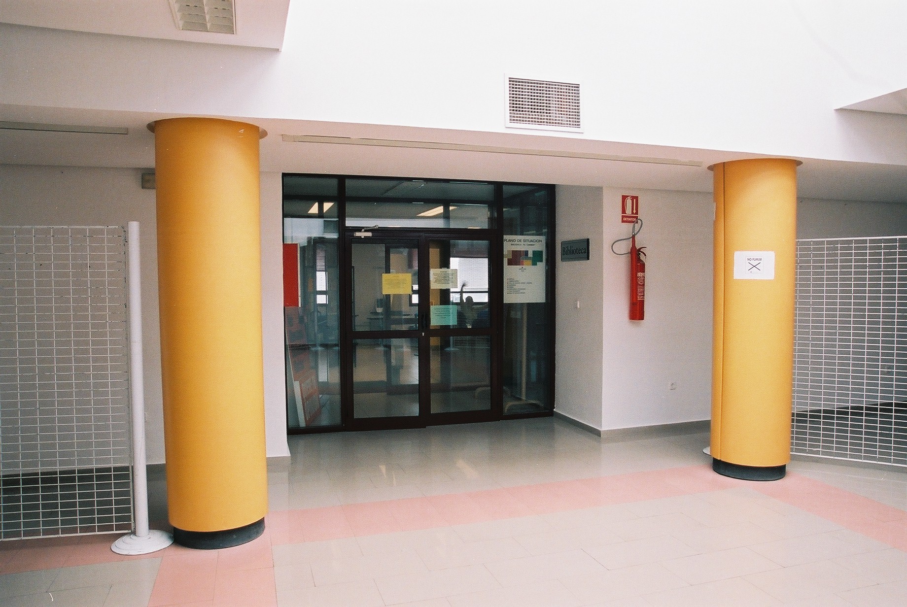 Acceso a la Biblioteca. Ésta se encuentra en la 1.ª planta, junto a un espacio que se utiliza habitualmente como sala de exposiciones del Centro Cultural (Fotos Carrión [Alcantarilla], 21-7-2003)