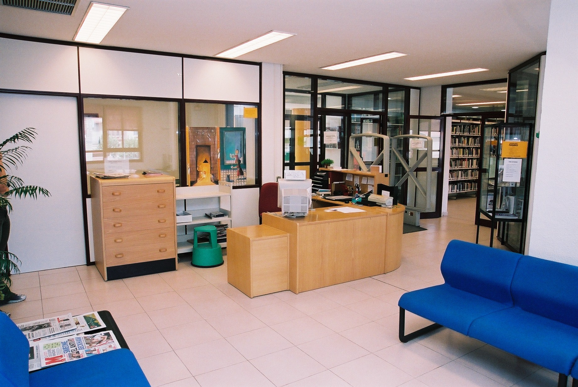 Mostrador de Recepción/Préstamo (Fotos Carrión [Alcantarilla], 21-7-2003)