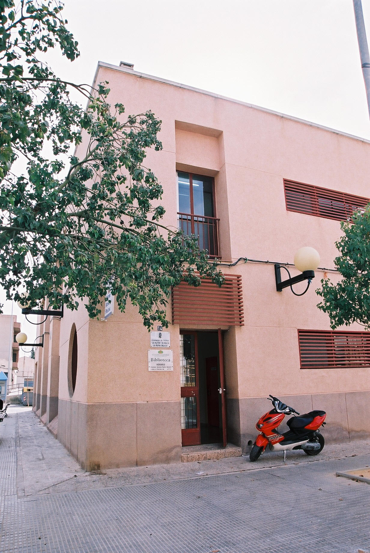 Vista parcial de la fachada principal del edificio de la Biblioteca, desde la Plaza de La Ñora (Fotos Carrión [Alcantarilla], 21-7-2003)