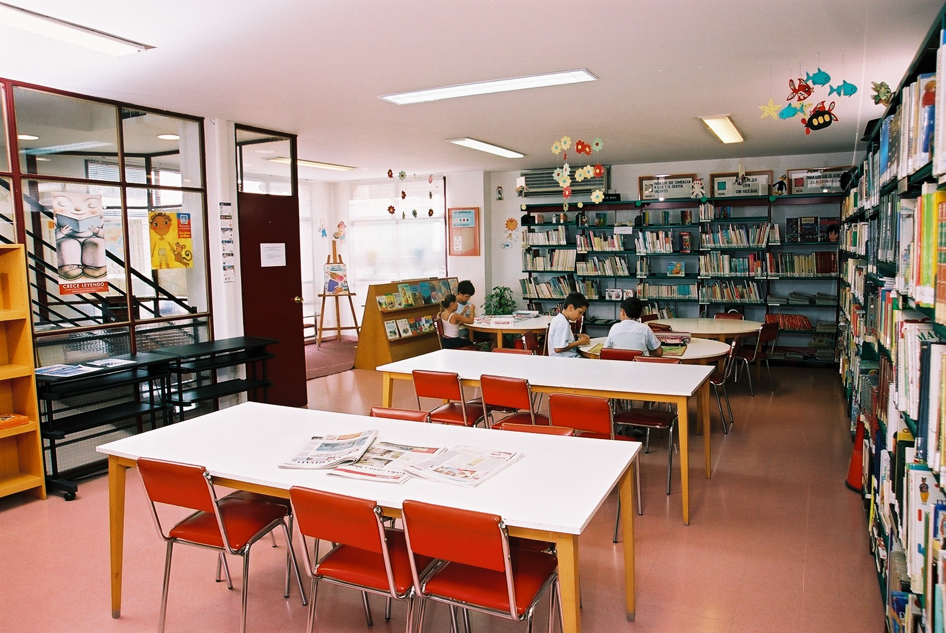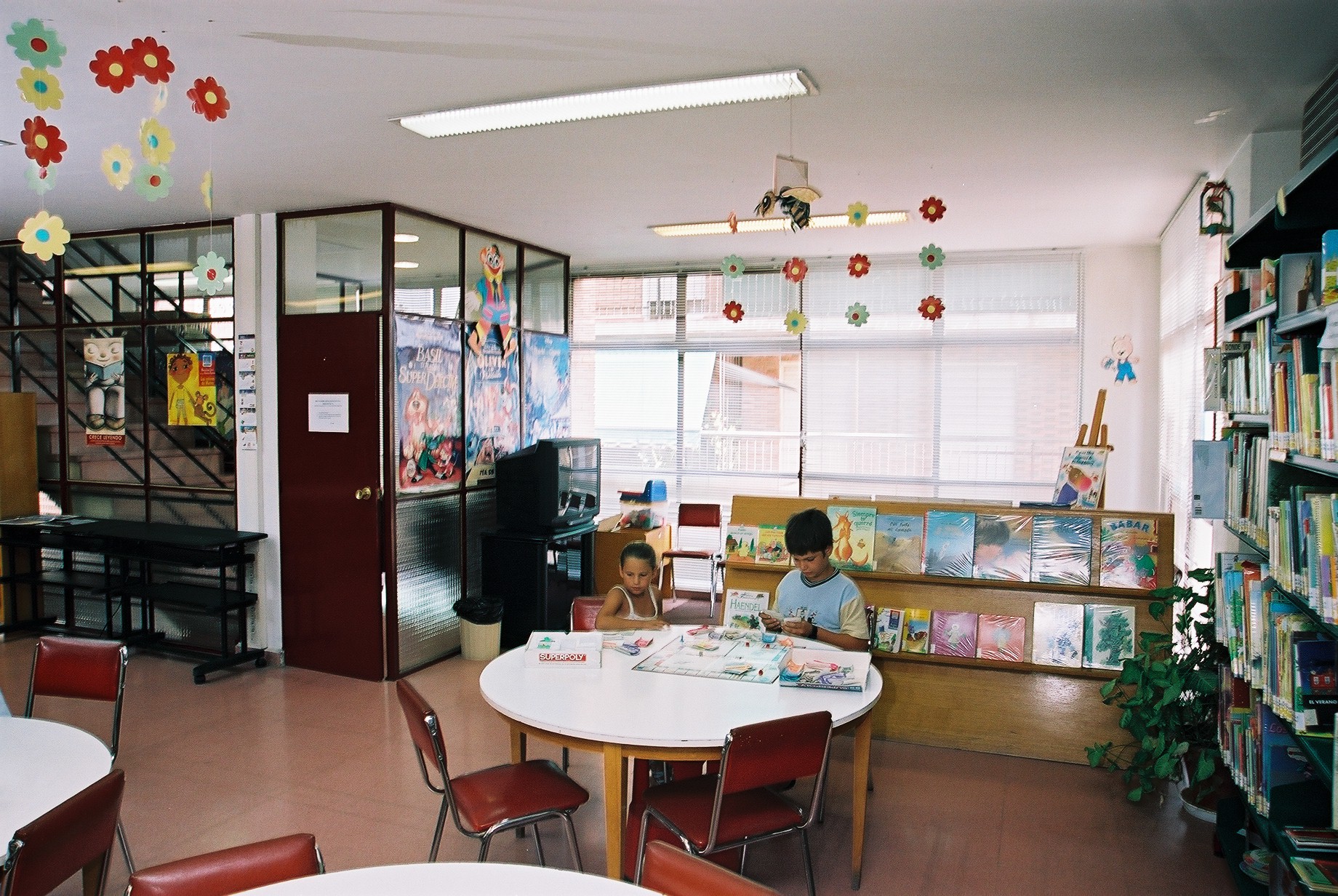 1.ª planta, Sección Infantil con el servicio de Préstamo al fondo (Fotos Carrión [Alcantarilla], 21-7-2003)