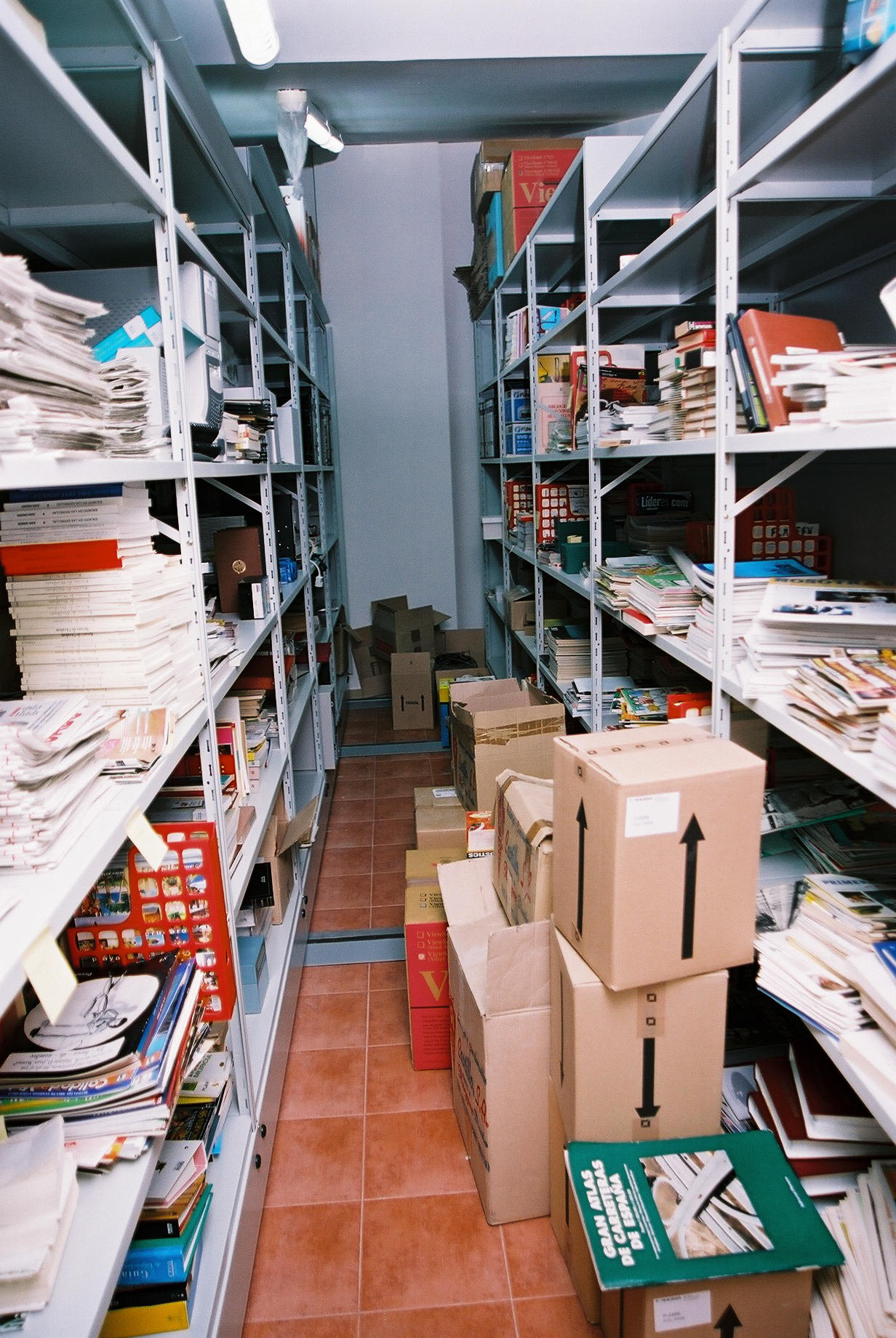 Vista del Depósito. El "Compactus" está anulado hasta que sea reforzada la estructura del edificio para que soporte su movimiento (Fotos Carrión [Alcantarilla], 21-7-2003)