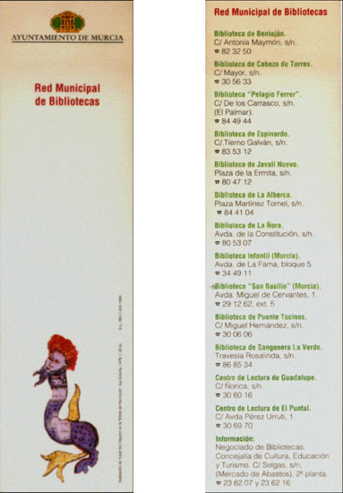 Comentarios: basado en el que se utilizó para la inauguración del Centro de Lectura de El Puntal.- En el reverso, directorio de la Red